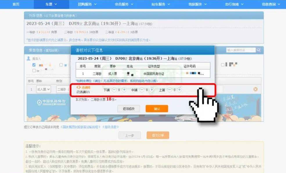 另外,如剩余席位(铺位)无法满足需求,系统将自动分配。