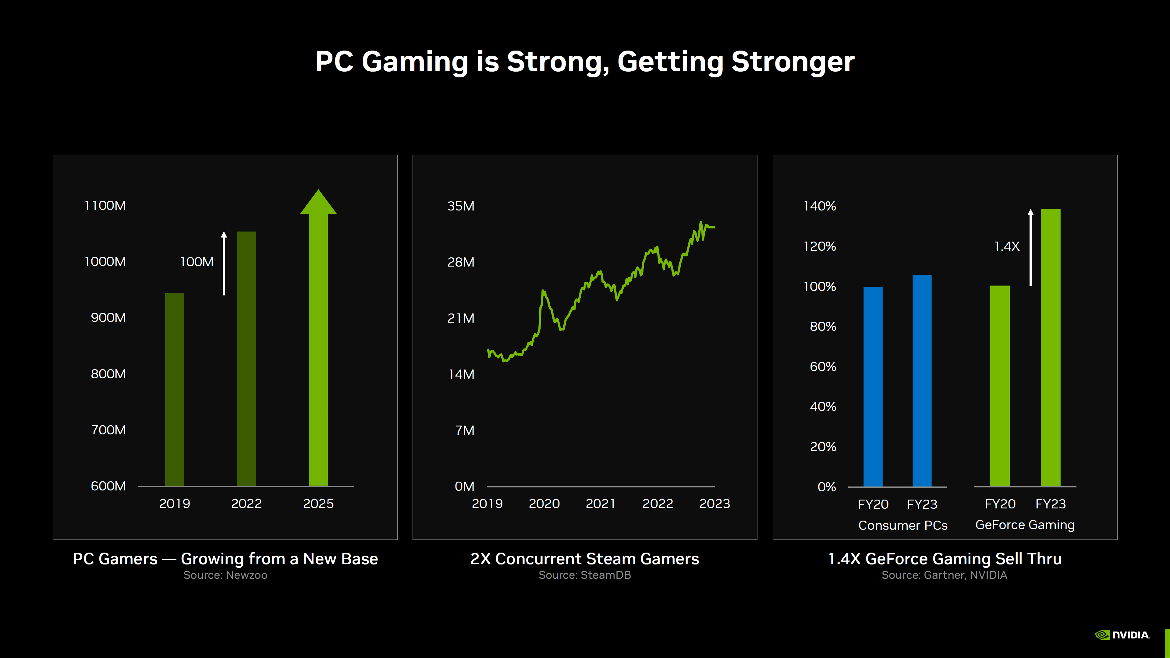 NVIDIA还强调,PC游戏市场是十分繁荣的,最近四年来Steam同时在线游戏玩家数量翻了一番,已超过3000万。