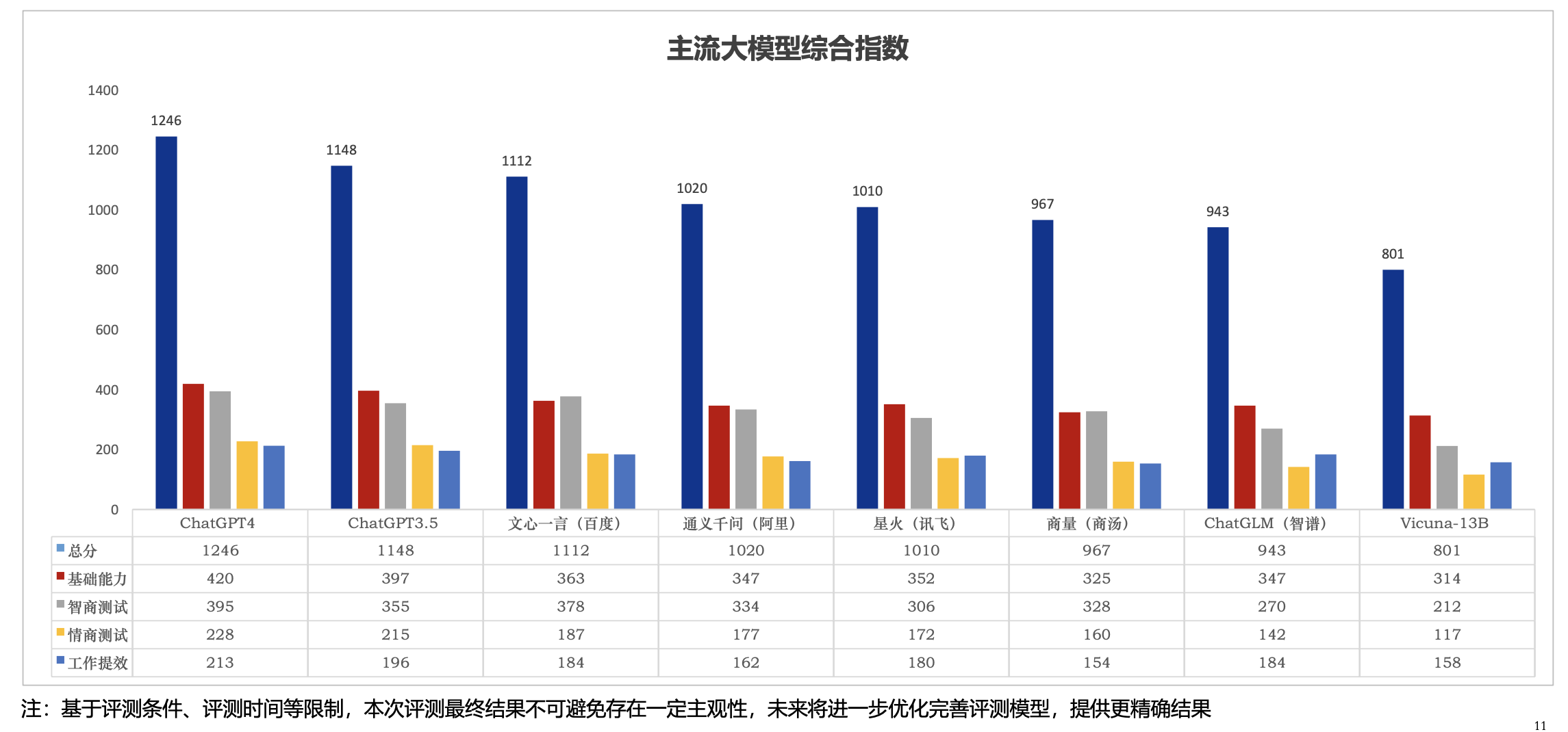 由百度开发的人工智能大模型文心一言是目前国内自主研发的大模型中具有优势的产品。其余大模型产品也在基础能力方面表现优良,但面对较复杂的工作内容或情商环境仍有不同程度的进步空间。
