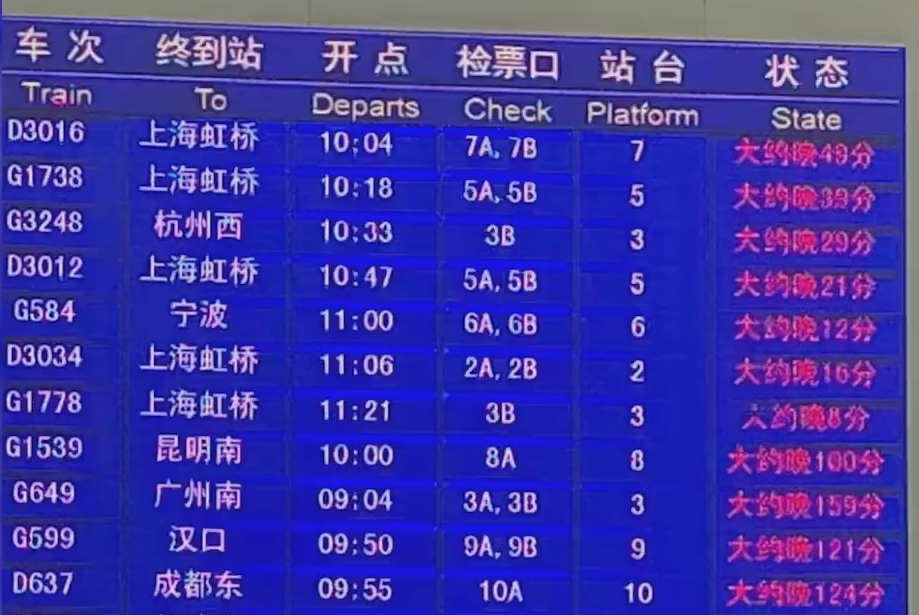 突发晚点且时间超长,不少旅客的出行受到严重影响,比如李玉(化名)原本计划搭乘杭州西开往武汉的G595次高铁列车,进行基金从业资格考试的第一场考试,但最终错过。