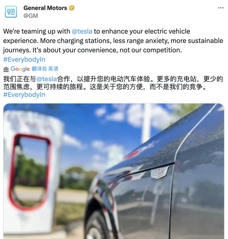 随着特斯拉开放充电桩供其他车企的车辆使用,这对于想要快速在电动车上有所建树的传统车企而言是一次重要机会。正如通用汽车在Twitter上说的那样,与特斯拉的合作,关乎的是用户的用车便利性,而不是车企间的竞争。