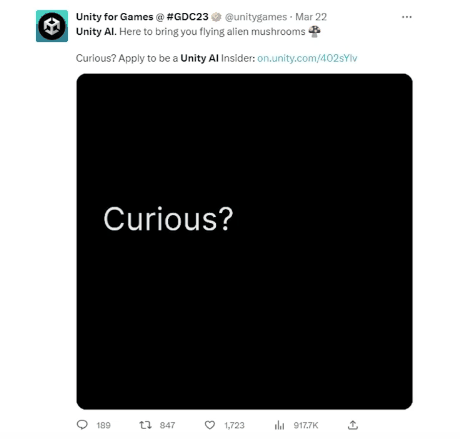 Unity中国关注生成式AI的步调和Unity基本一致。