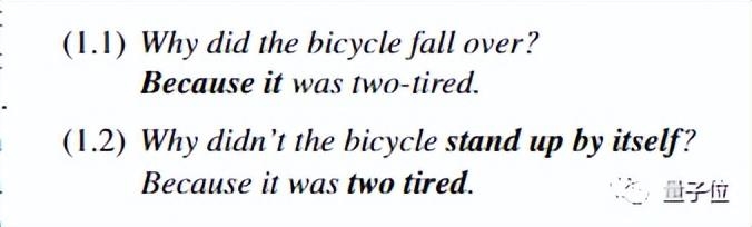 为什么自行车倒了?因为它有两个轮子(two-tired)/它太累了(too tired)。