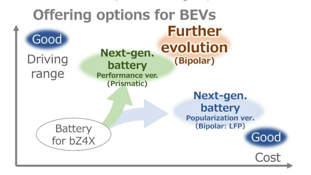 低端产品将采用磷酸铁锂电池,与现在的bZ4X相比,续航里程增加20%,成本降低40%,并可在30分钟内充电到80%。