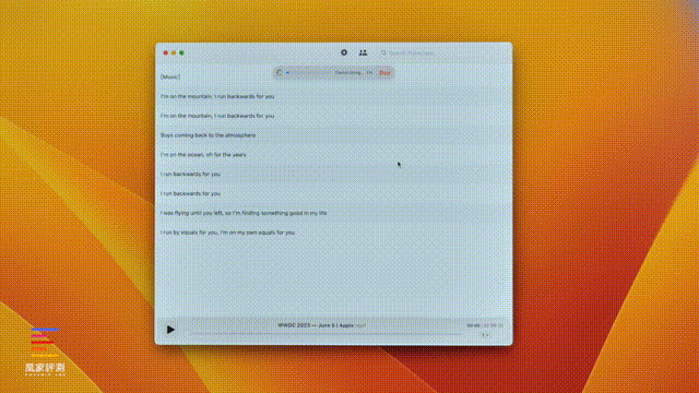 在处理一些采访录音或者现场口播时,我们会用到一个叫MacWhisper的语音转文字app,它是完全基于本地模型进行识别的一款app。我们分别用它对WWDC23发布会全程进行语音识别,整体时长2小时9分30秒,M2 Ultra完成语音识别共耗时6分48秒,相比M1 Ultra的7分12秒有6%的速度优势。有提升,不过对于现在的运算速度来说,提升还没有质的变化。