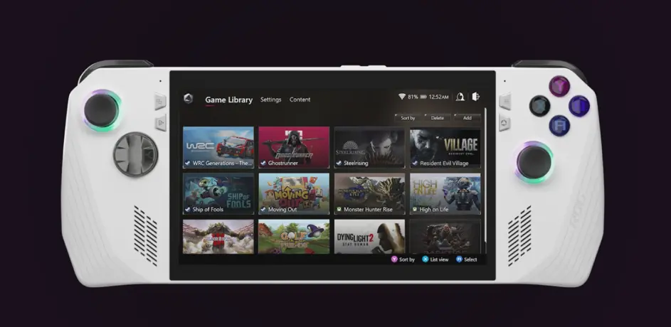 ROG掌机在性能层面,联合AMD定制了掌机专属APU——锐龙 Z1 Extreme处理器。该APU采用Zen 4架构,拥有8核心16线程,单核最高时钟加速频率达5.1GHz,三级缓存可达16MB;在低功耗下内置12核心RDNA3核显,浮点性能达8.6TFLOPS,支持AV1编码加速,还可以开启AMD RSR及FSR技术。ROG掌机内置16GB LPDDR5 6400MHz高频内存及512GB TLC PCIe 4.0 SSD,机身还自带Micro SD插槽,可以进一步拓展存储空间。