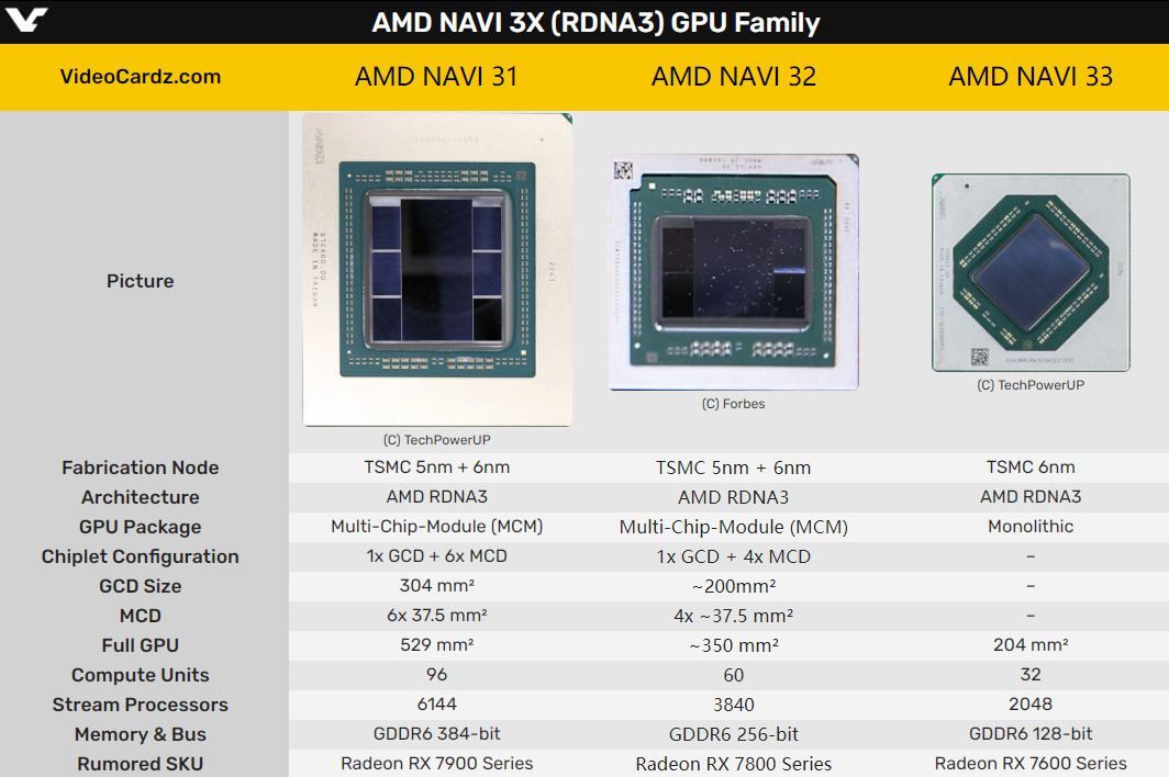 其实在它俩中间,还有个中等核心Navi 32,预计会用于桌面的RX 7800/7700系列,以及笔记本的高端系列。