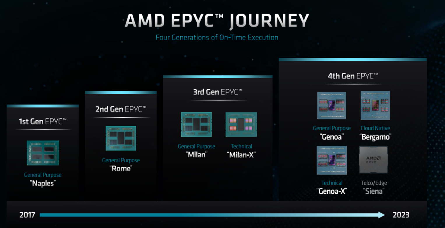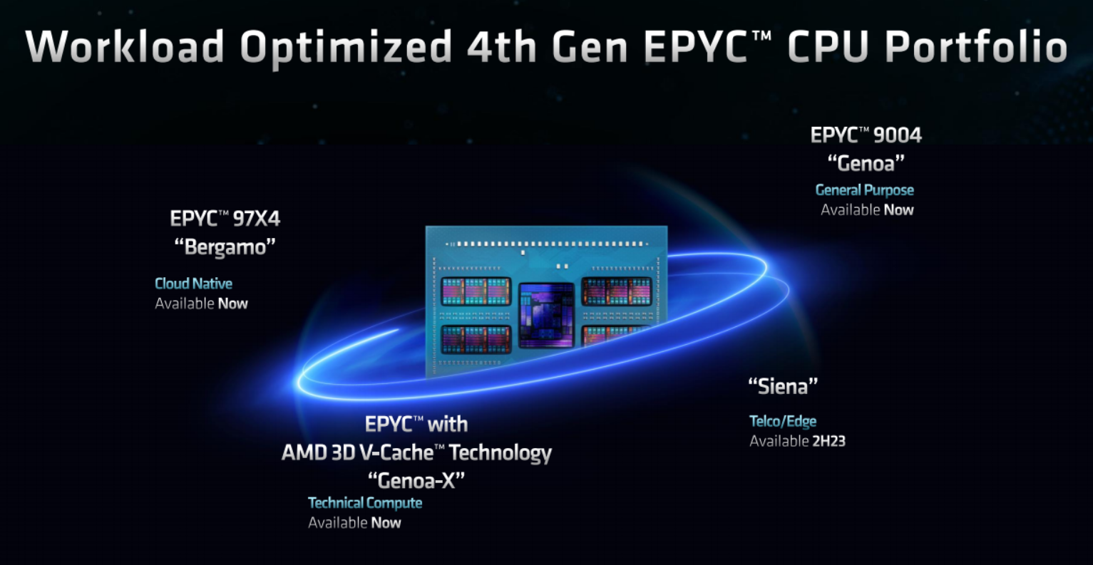 AMD官方早就预告了由Genoa衍生出来的另外三个分支,分别面向不同应用领域和工作负载,共同组成一个庞大的阵营。