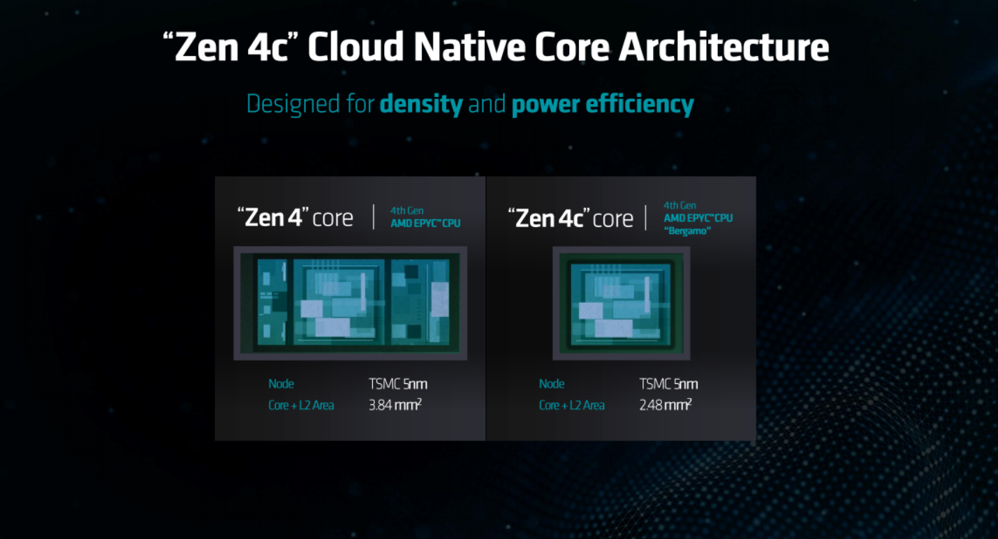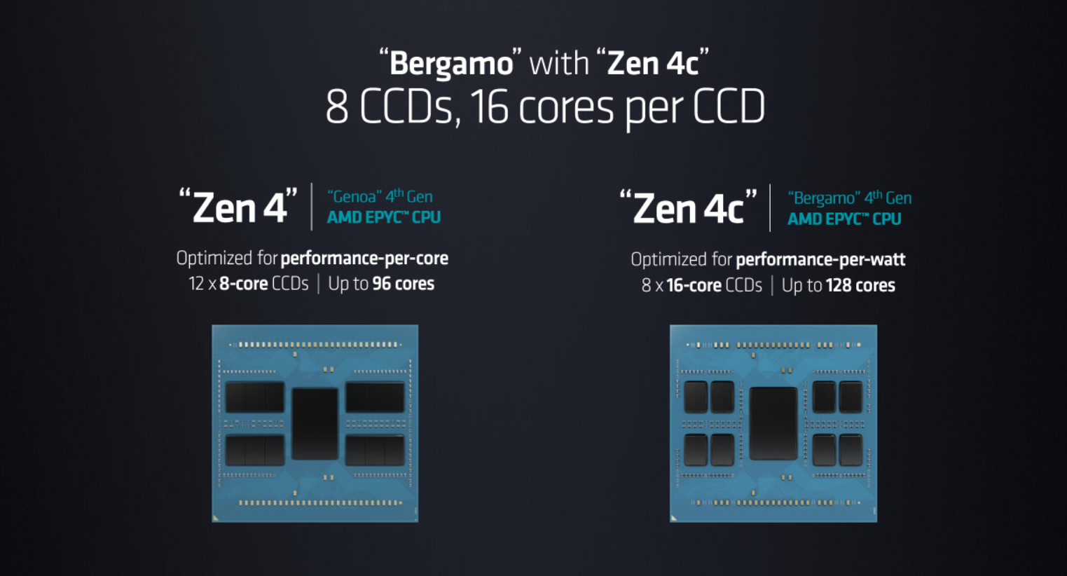 “Bergamo”(贝加莫)首次采用精简架构Zen4c,是AMD首款专门针对云原生计算设计的产品;