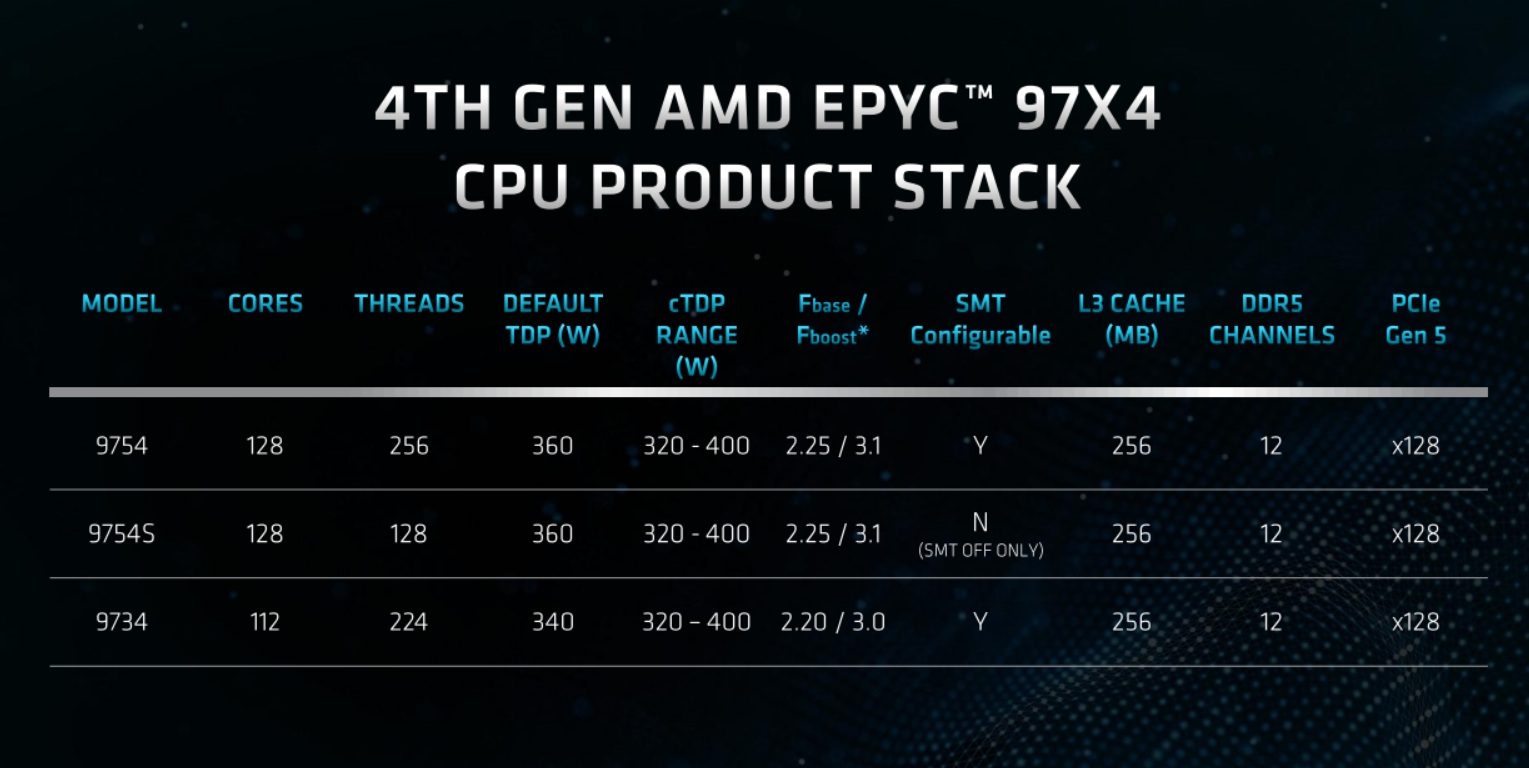 就是在EPYC 9754的基础上关闭了SMT同步多线程技术,变为128核心128线程,其他完全相同。