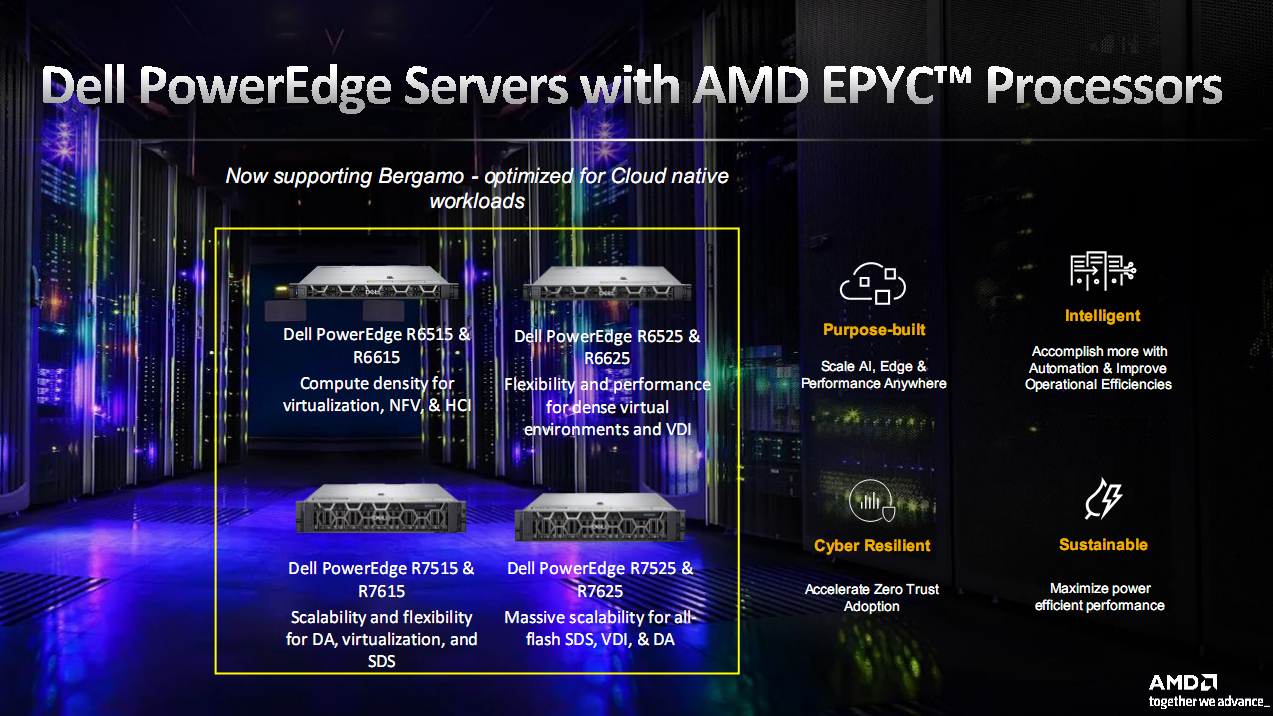 Zen4c Bergamo EPYC 9704系列处理器现已上市,相关解决方案也正在陆续登场,比如戴尔的PowerEdge服务器就已支持,针对云原生负载做了特别优化。