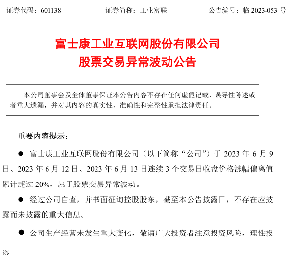 昨晚,富士康发布股票交易异常波动公告。公司提示称,近期,市场对AI服务器、液冷服务器等热点关注度较高。尽管当前全球服务器市场加速扩容,但服务器需求受到人工智能技术迭代、云服务商业务发展等综合因素影响,截至2023年第一季度,公司Al服务器业务产生的经济效益和对公司业绩的影响相对较小,敬请广大投资者注意投资风险,理性决策,审慎投资。