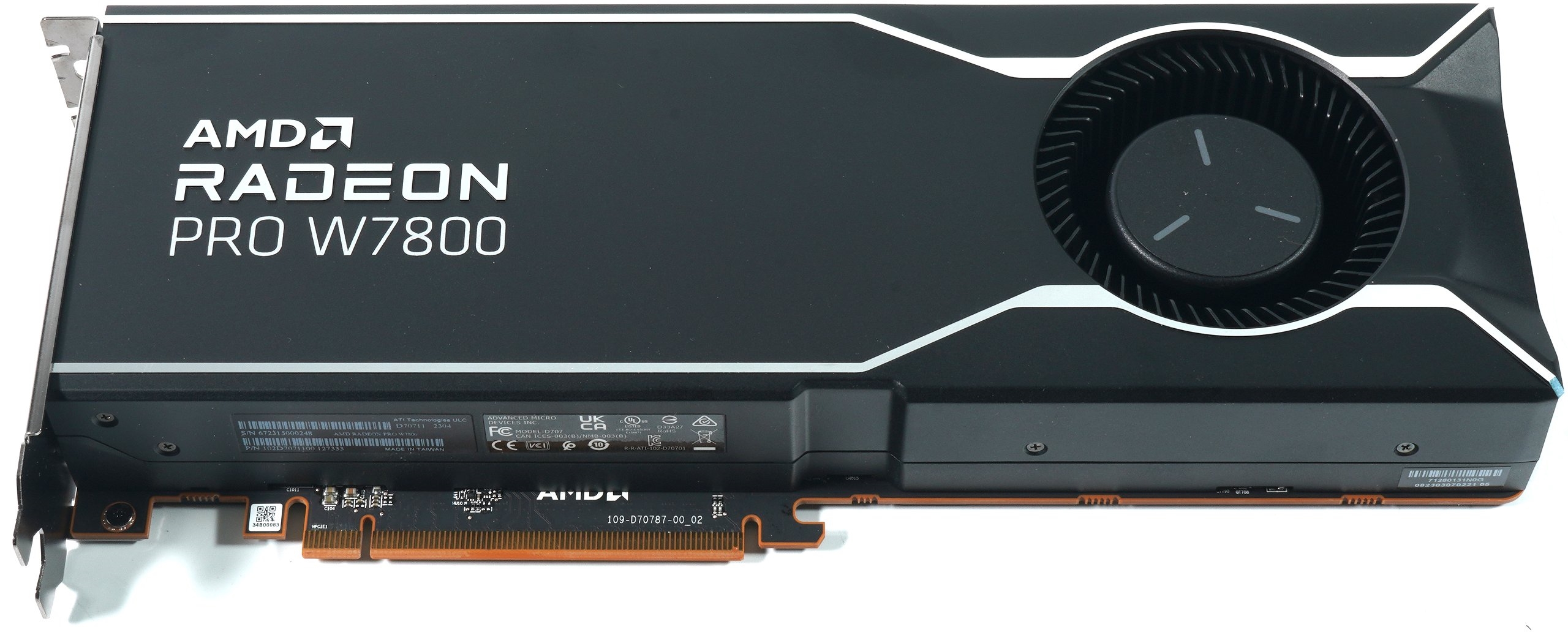Radeon Pro W7800其实用的Navi 31大核心,配备4480个流处理器、256-bit 32GB GDDR6显存,核心基础频率1855MHz,可设置加速到2499MHz,显存频率则是18GHz,整卡最大功耗260W。
