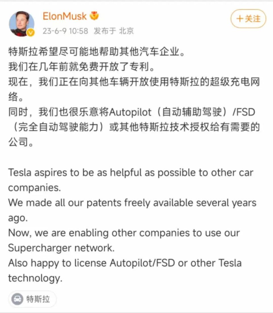 而且就在前几天,马斯克在国内社交媒体平台上提到,“特斯拉很乐意将Autopilot/FSD或其他技术授权给有需要的公司”。