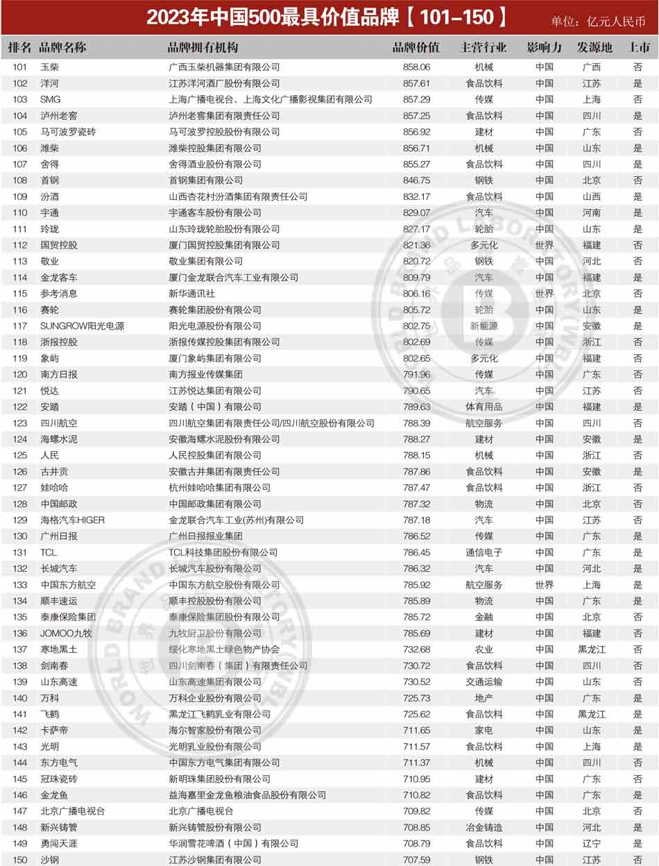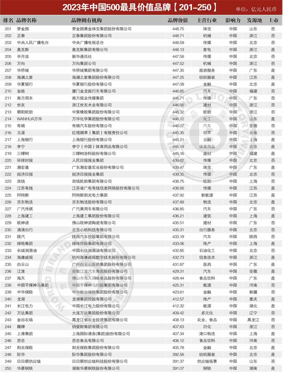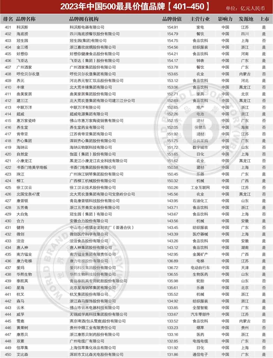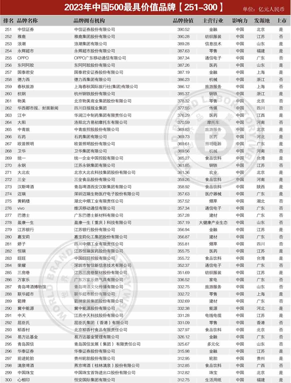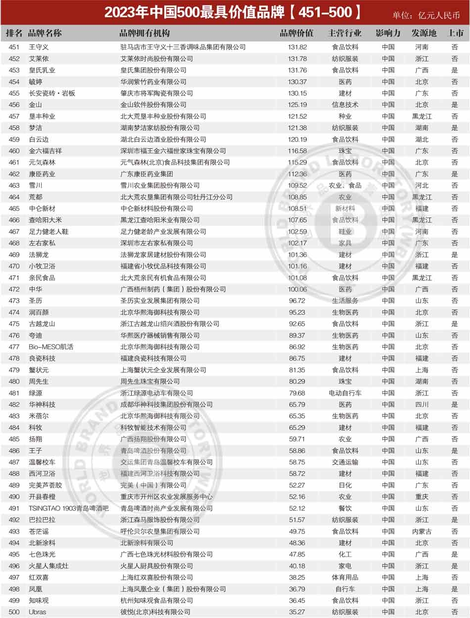 世界品牌实验室(World Brand Lab)今天发布2023年《中国500最具价值品牌》分析报告。2023年《中国500最具价值品牌》的总价值为343311.81亿元,比去年增幅10.84%。平均价值高达686.62亿元,入选门槛35.27亿元。
