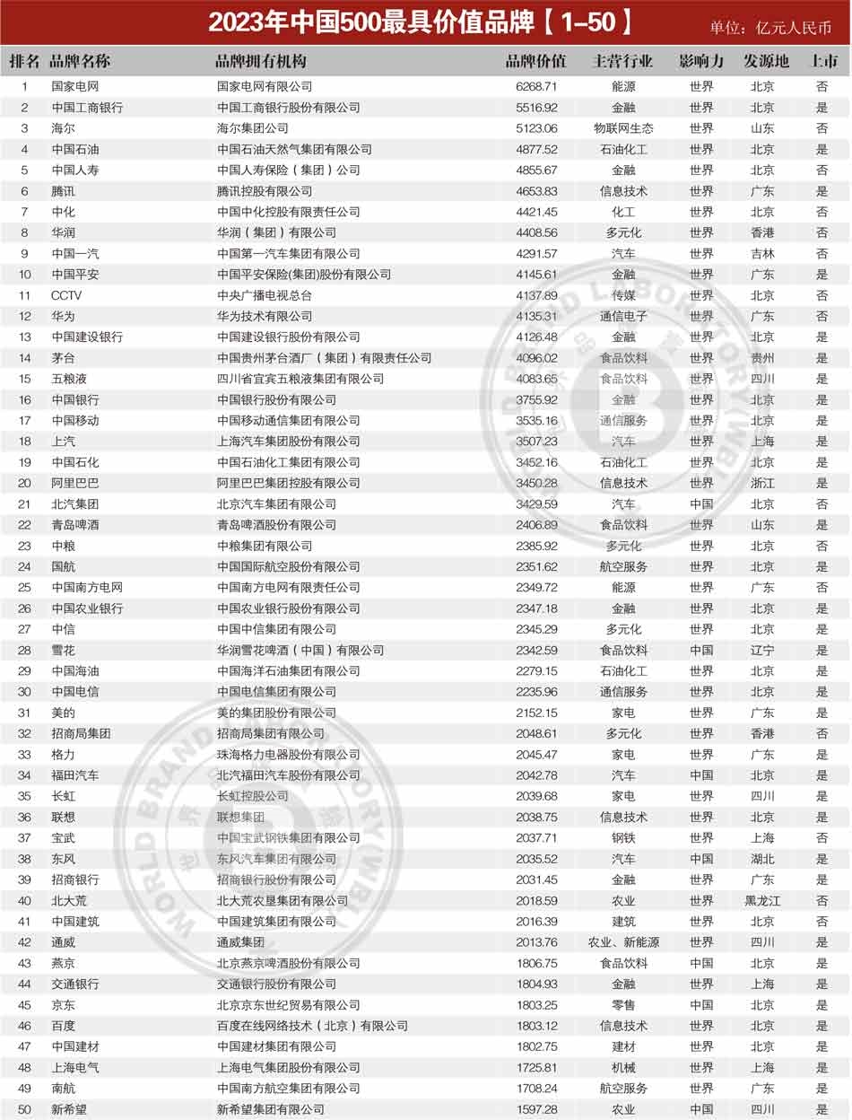 在这份基于财务数据、品牌强度和消费者行为分析的年度报告中,国家电网、中国工商银行、海尔成为中国最具价值的前三大品牌,品牌价值分别为6268.71亿元、5516.92亿元、5123.06亿元。