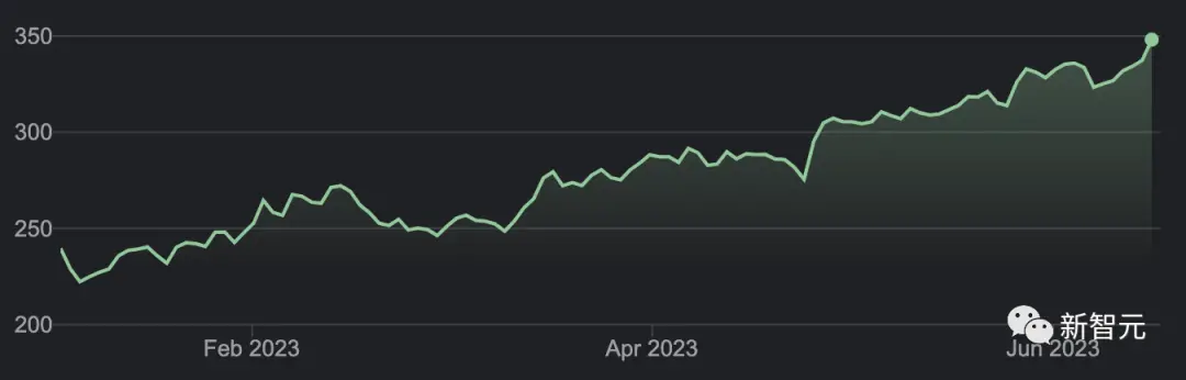 因为市场对AI前景的乐观情绪,本周四收盘时,微软股价达到了创纪录的水平