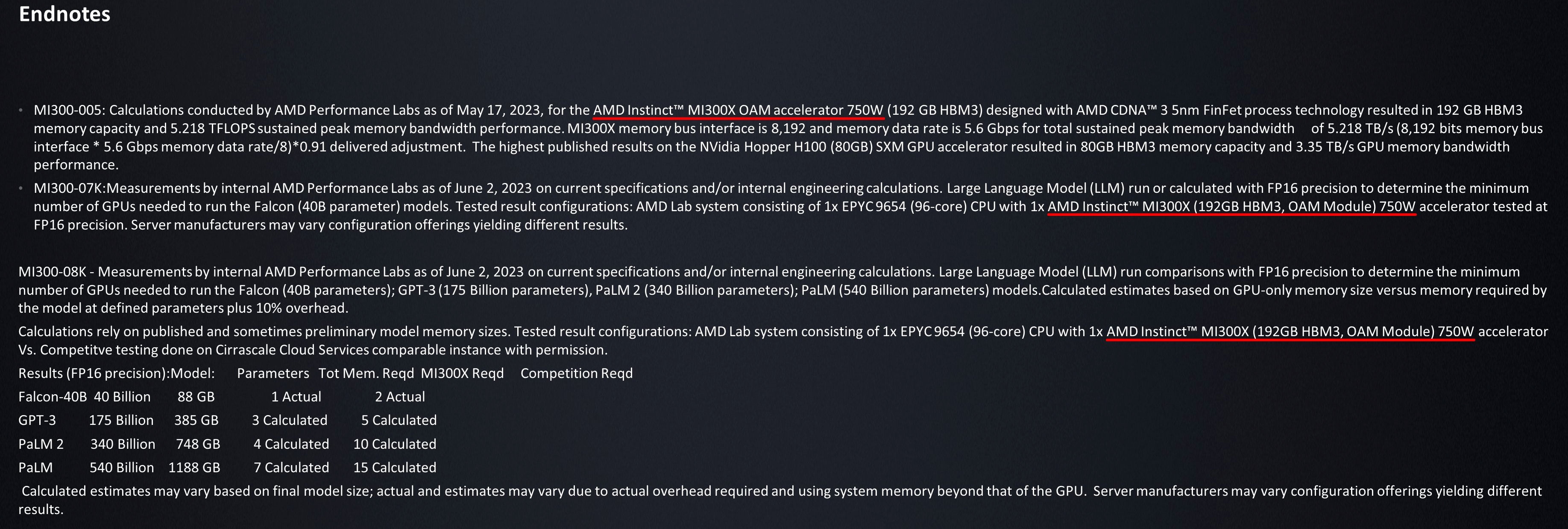 根据AMD官方材料的备注信息,可以看到MI300X的功耗达到了惊人的750W!