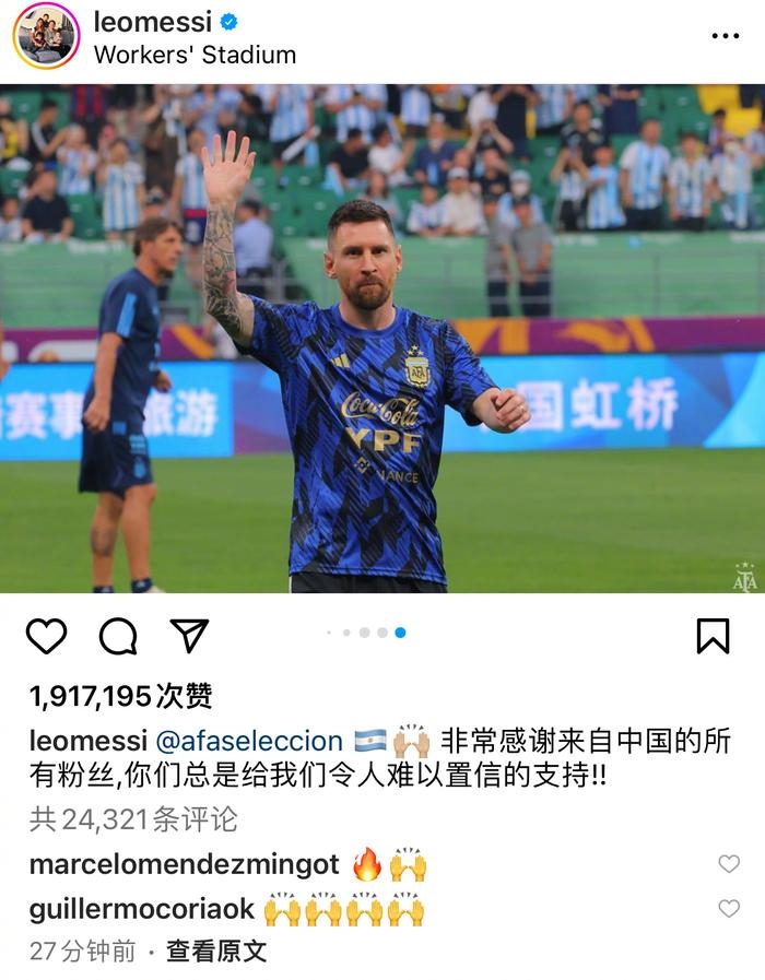 6月16日消息,在昨晚的比赛结束之后,梅西已经乘坐自己的私人飞机离开中国。结束中国行之后的梅西,不仅通过国内微博平台发文,还在海外社交平台Instagram上发文感谢中国粉丝,称中国球迷带来了难以置信的支持。