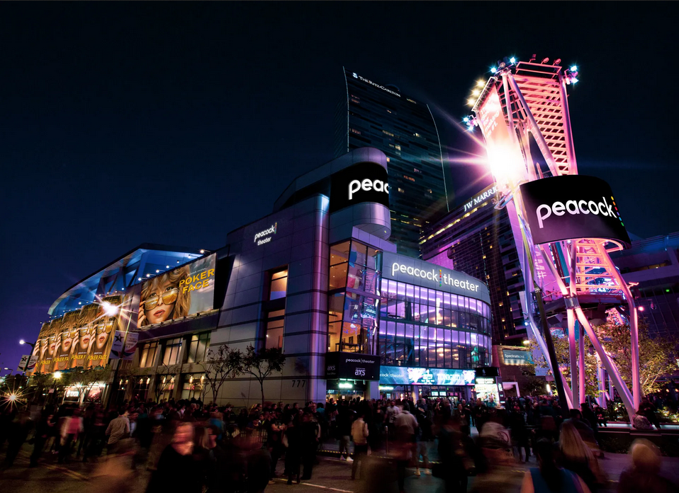 从 7 月 11 日起,微软剧院将更名为“Peacock Theater/孔雀剧院”,而外面的 Xbox 广场也将对应的改名为“Peacock Plaza/孔雀广场”。由 AEG 促成的交易也让 Peacock 成为了 LA Live 的独家流媒体合作伙伴。