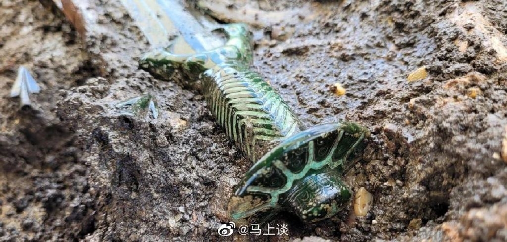 按照官方的说法,这把剑距今已有3000年历史的青铜剑,其保存完好,色彩鲜明,“几乎还在发光”。