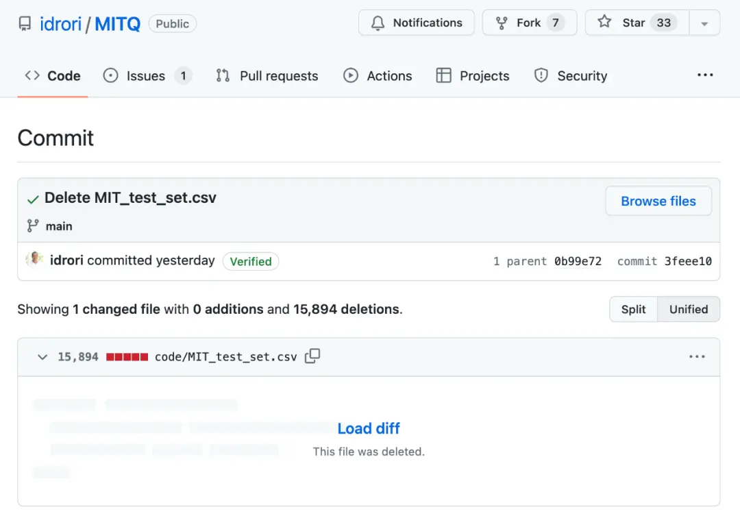 经过检查、对比,三人确信这个被删掉的文件代表了论文中分析的测试集,因为评估代码中的所有数据的文件路径都指向它,没有提供任何修改其内容的代码,而且它在最初发布的 GitHub 仓库中是可用的。此外,该文件满足了论文中规定的所有模式要求(行数等)。这些证据似乎非常有力地支持了下面的所有主张,
