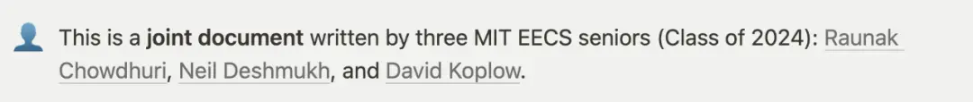 同时,三人也在博客中指出一点:《Exploring the MIT Mathematics and EECS Curriculum Using Large Language Models》论文上列出的几个作者都是本科生研究人员,让这些人对工作中出现的任何失误负责是不合适的。相反,责任应该在指导作者身上 —— 他们才是被期望确保工作符合其领域内公共学术标准的人。