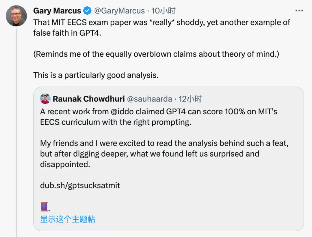 “作为麻省理工学院的本科生,至少根据我们的经验,这个测试集并不能准确地代表在麻省理工学院获得 EECS 学位所需的理解广度和深度。”三人在博客中这么写道。