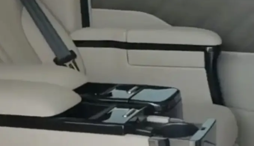 内饰部分,高山DHT-PHEV内饰配备悬浮式双联屏,预计使用电子怀挡设计,中控台保留实体按键,下方为无线充电面板和杯架,第二排独立航空座椅配备了超长滑轨,还带有伸缩式杯架、小桌板、腿托等。
