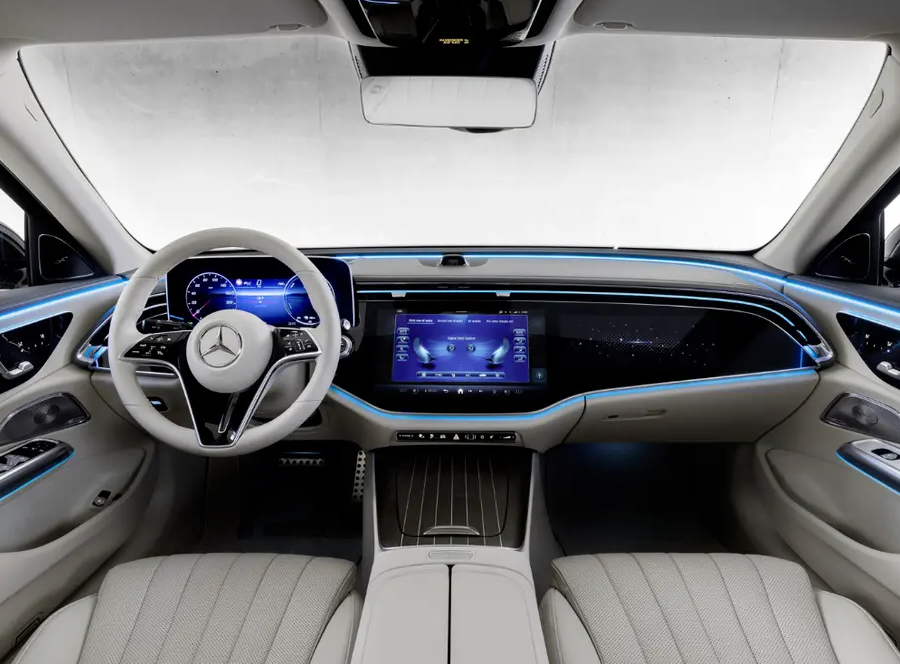 内饰的设计上,全新奔驰E采用了较为浓郁的科技化设计理念,看齐奔驰EQS。