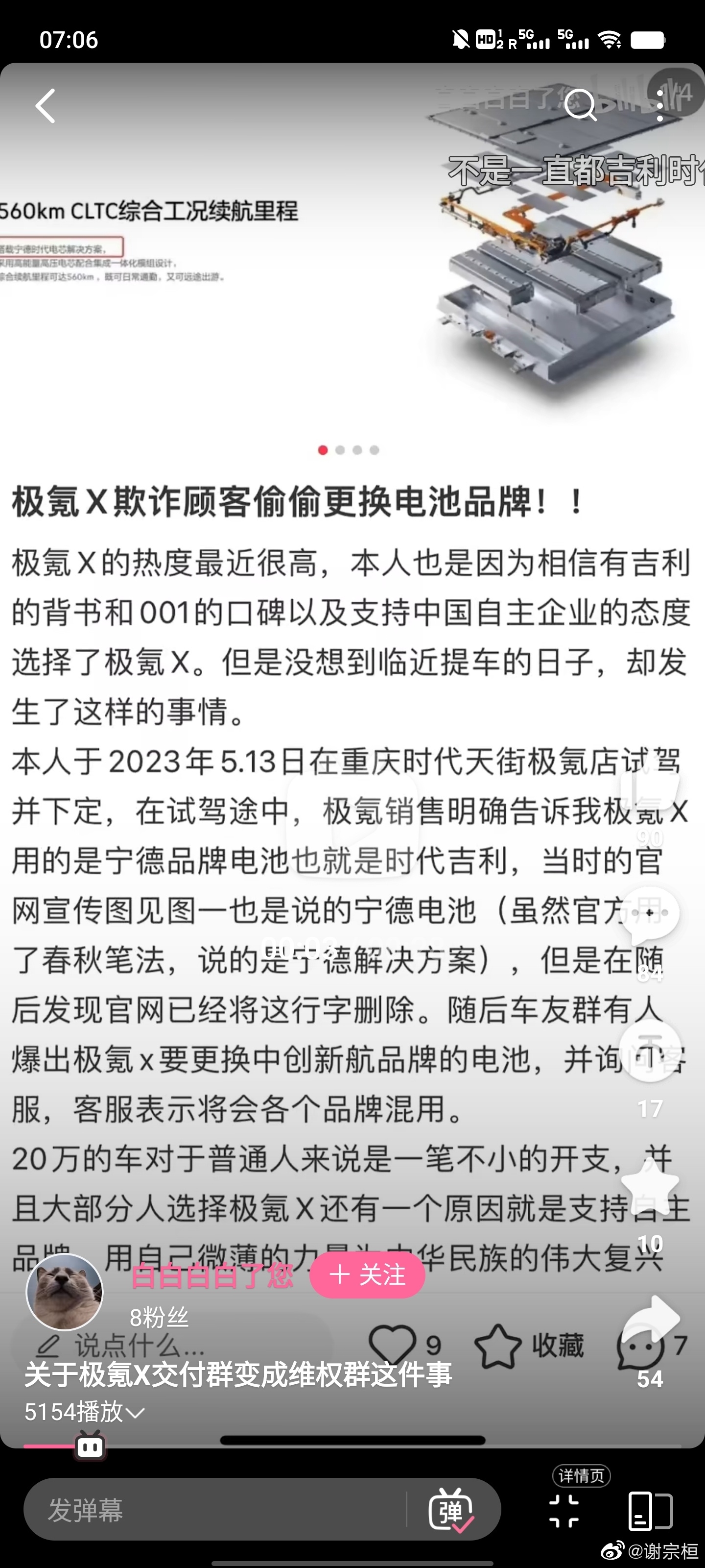 该车主极其不满,认为极氪X欺诈顾客,偷偷更换电池品牌。