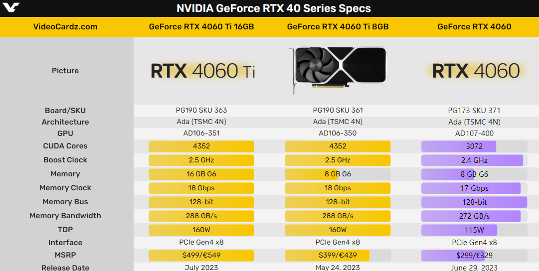 RTX 4060官方定价2399元人民币起,对比RTX 3060的首发价便宜100元。