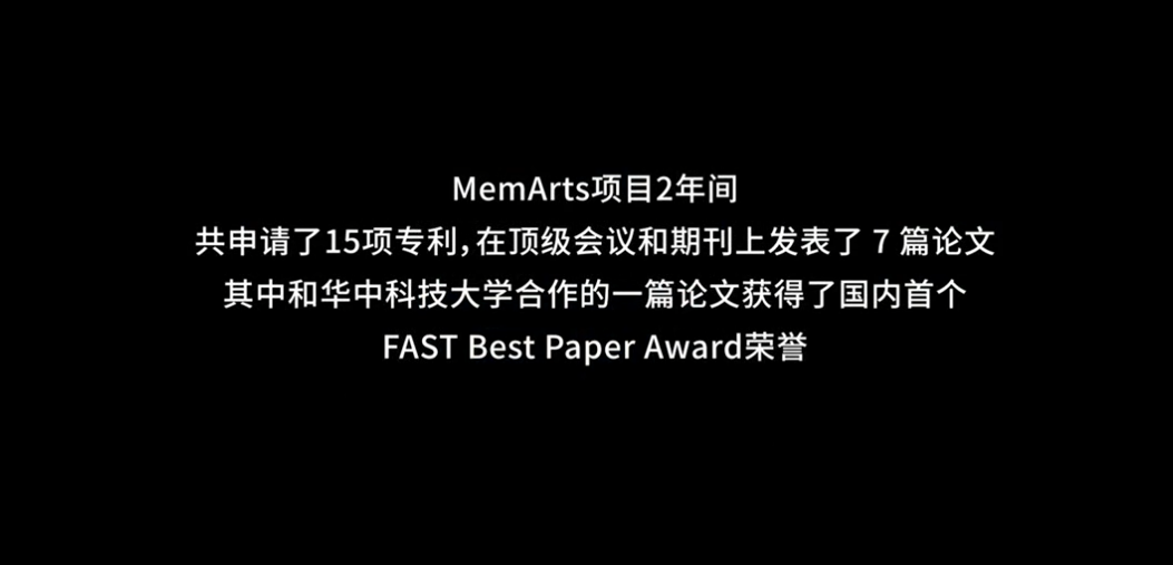 华为表示,MemArts项目2年共申请了15项专利,在顶级会议和期刊发表7篇论文,其中和华中科技大学合作的一篇论文还获得了国内首个FAST Best Paper Award荣誉。