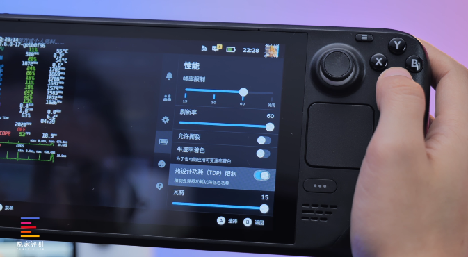 除了分辨率,两台掌机还可以进行 功耗档位 的选择。将 ROG掌机 调至 性能模式 ,此时 APU功耗被控制在15W ,调到了和Steam Deck相同的功耗。