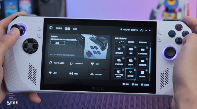 接着再来聚焦掌机中心,比较一下这两块 屏幕 。ROG掌机是一块7英寸的1080p分辨率,支持120Hz刷新率和500nit峰值亮度,16:9的屏幕比例更符合大多数游戏比例。