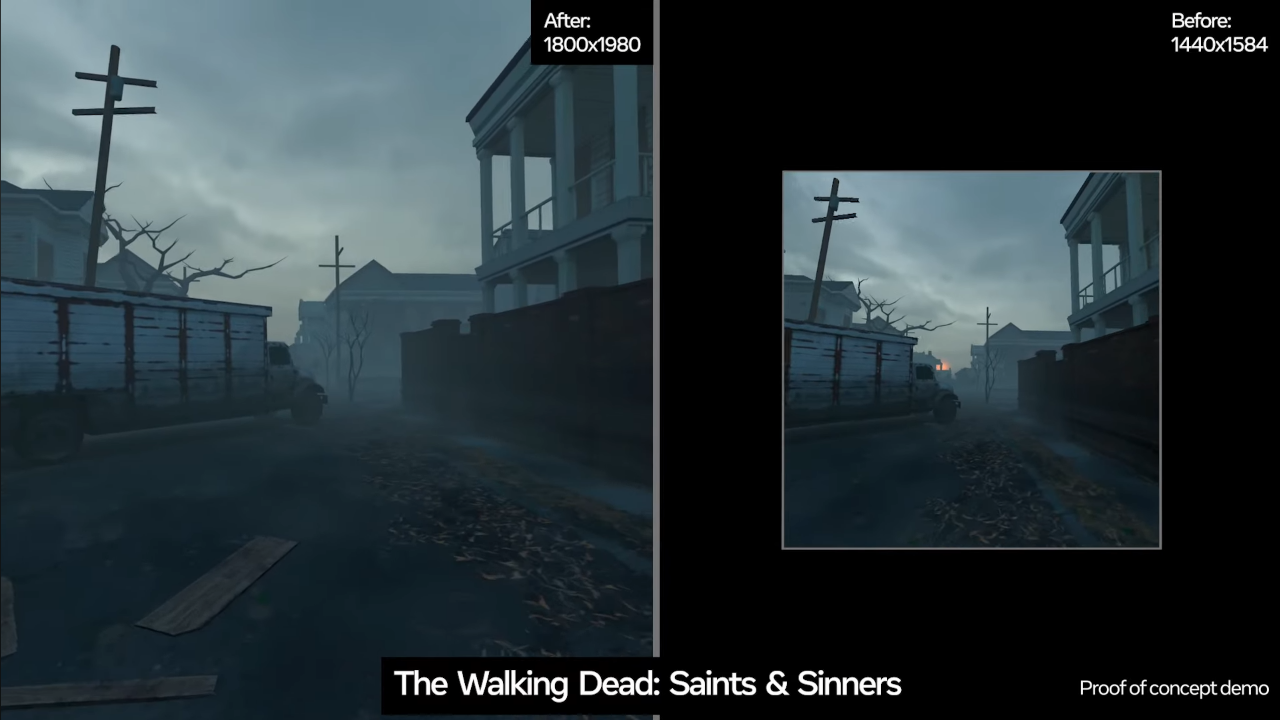 开发人员还可以更新他们的游戏和应用来应用这些性能提升。Meta 在公告中使用了《行尸走肉》游戏进行演示,显示了更高的分辨率。