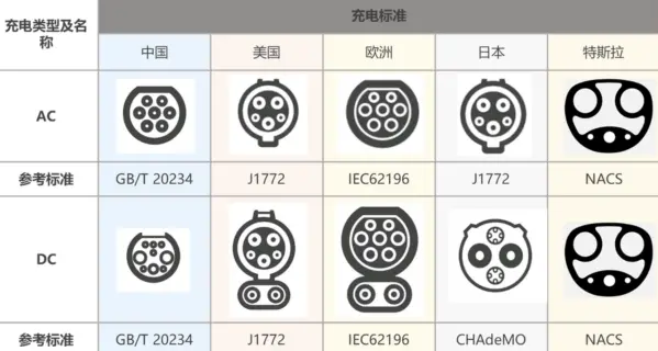 不同类型的充电标准 图源:知乎