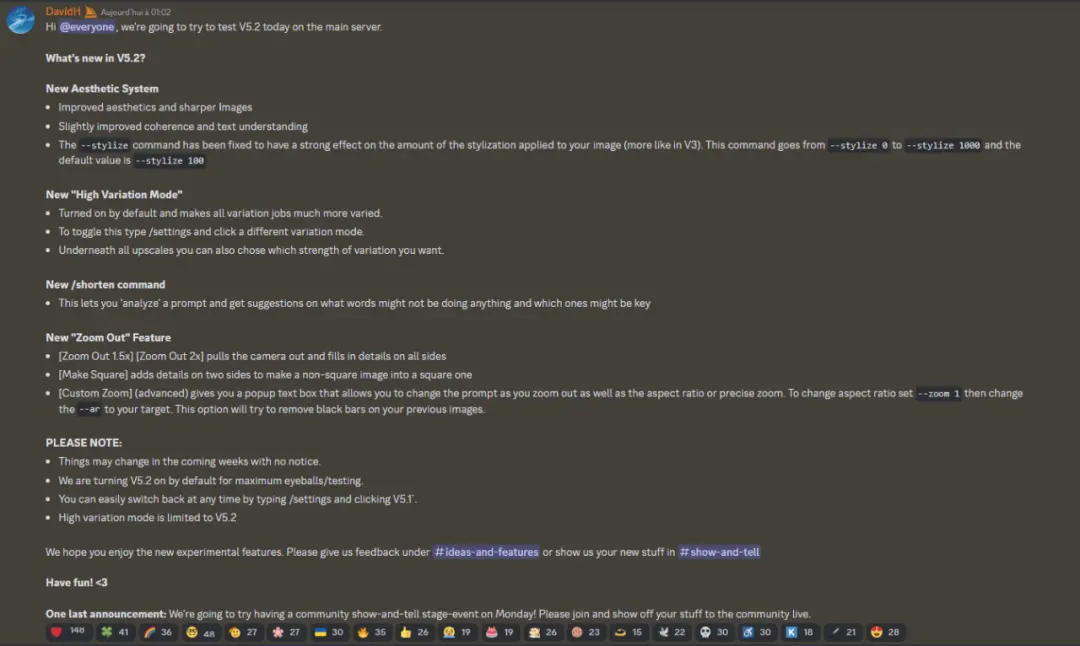 更多 Midjourney 5.2 的详细功能请参考如下: