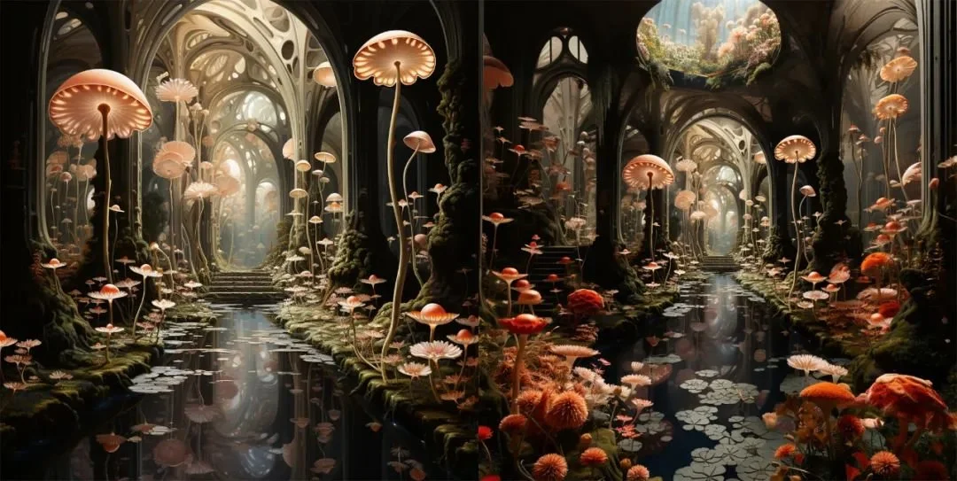 此次在图像风格化上,用户可以在 prompt 末尾设置 stylize 参数,现在支持的范围是0-1000。下图左没有使用风格化功能,图右为使用了风格化功能,二者的效果显而易见。