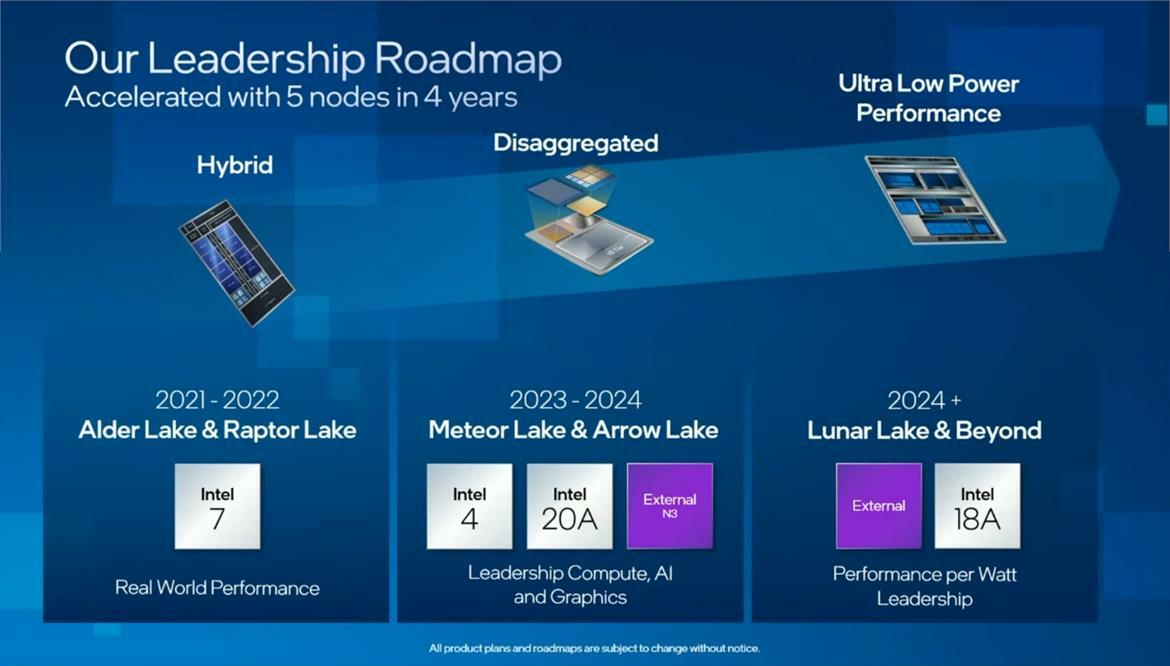 Intel也确认他们正在基于18A工艺开发处理器,而且内部就至少有5款产品,明确在2025年上市。