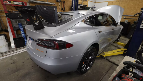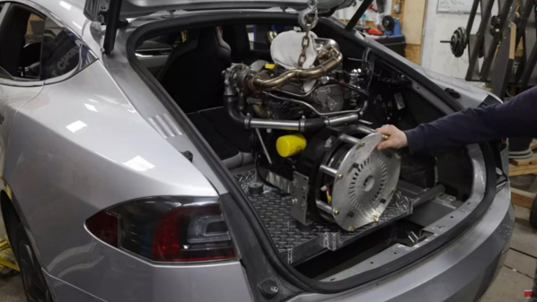 一个名叫“The Warped Perception”的YouTube频道对其拥有的特斯拉Model S进行了改造,将一台涡轮增压柴油发动机放入特斯拉Model S的尾箱中,以帮助它完成2500英里(4023公里)的公路旅行,同时尽可能少地减少充电。