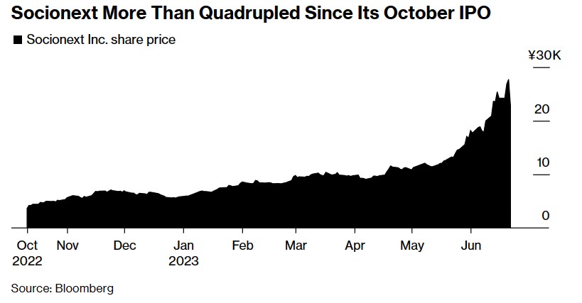 根据机构汇编的数据,Socionext今年迄今涨幅高达230%,相比之下,自1月份以来首次在亚洲上市价值超过5亿美元的公司平均涨幅达13%,同期全球公司IPO以来涨幅达18%。