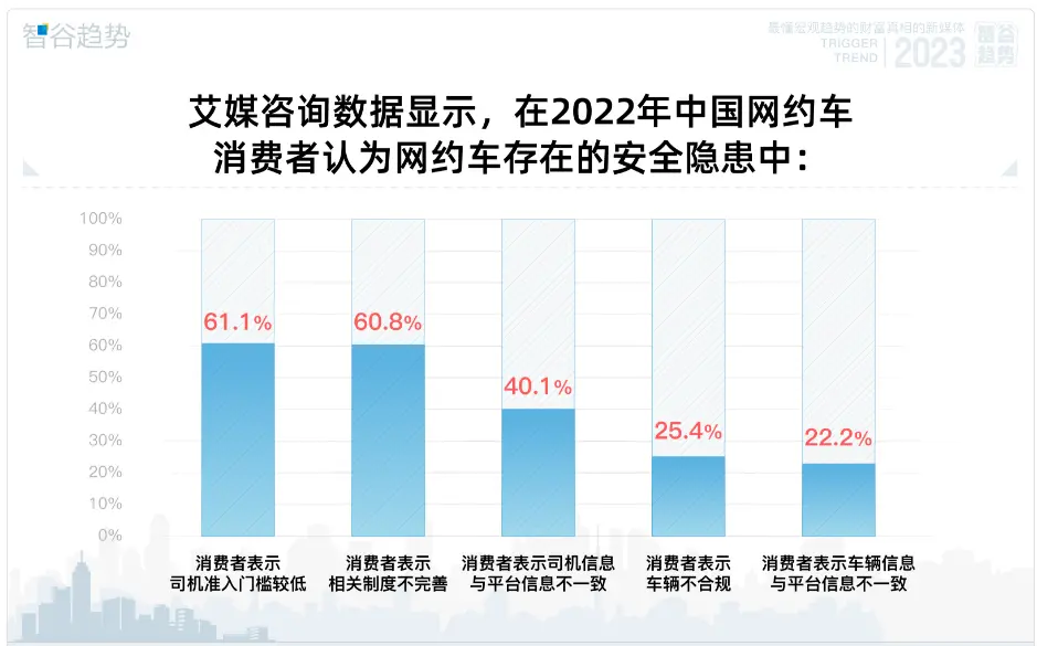 艾媒咨询数据显示,在2022年中国网约车消费者认为网约车存在的安全隐患中:
