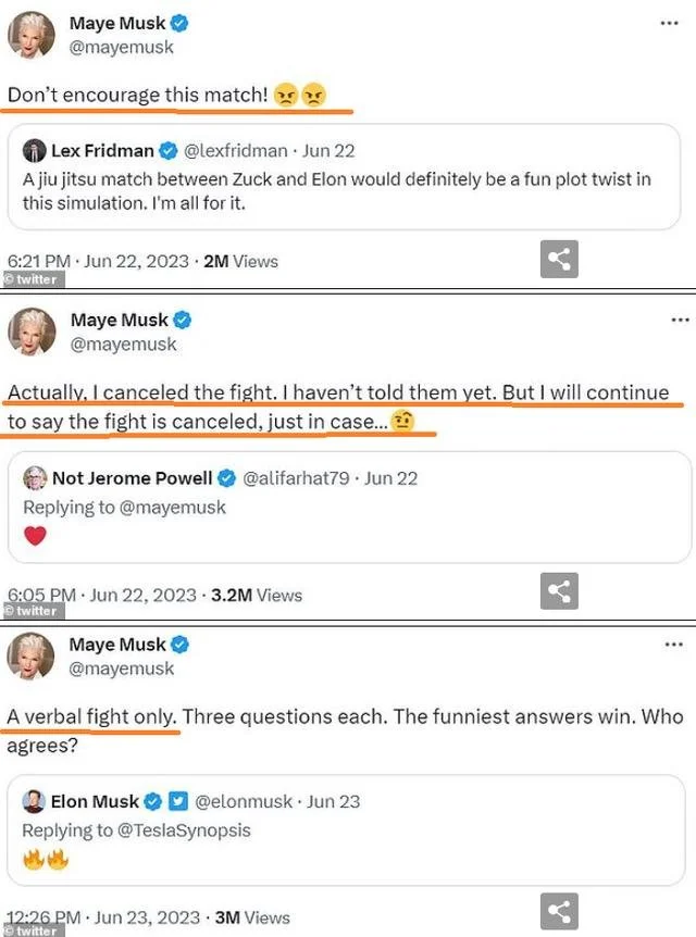“不要鼓励这场比赛!”梅耶在回复播客莱克斯·弗里德曼时这样写道,而后者似乎对两位亿万富翁之间拟议的战斗感到高兴。