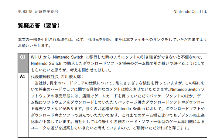 任天堂于6月27日今天宣布,对外公布近期举行的股东答疑会议内容,回应了备受质疑的下代Switch迟迟没有消息,表示正在“为突破未知领域”而仍在探讨中。