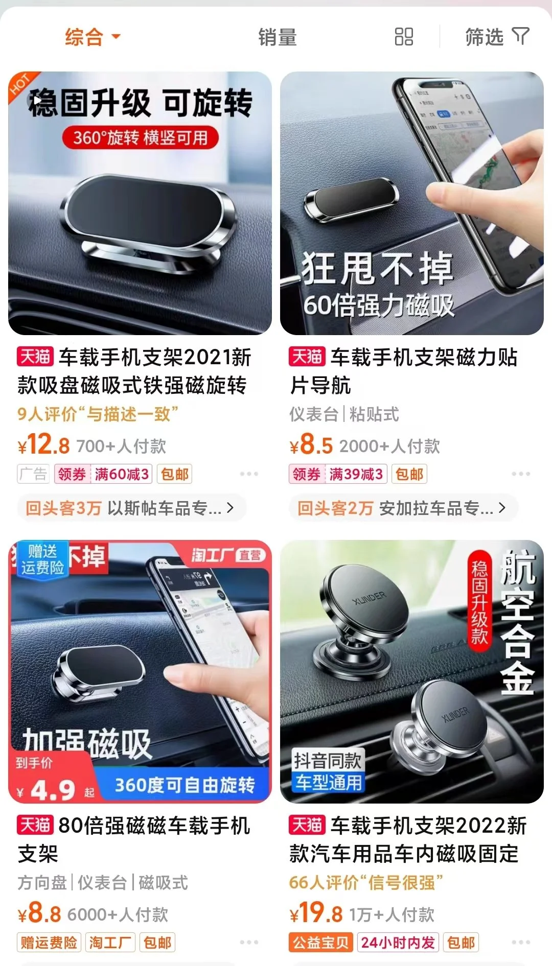 搜索某宝许久,小通还找到另一种固定方式——磁吸贴片。这种固定方式非常容易上手,官方可以提供磁性更高的磁贴配件,就可以避免手机被甩掉的问题。