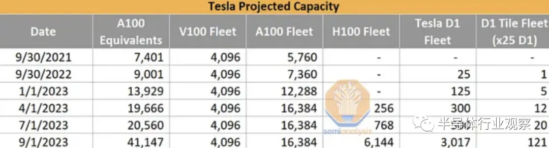 特斯拉目前拥有非常少量的内部人工智能基础设施,只有约 4000 个 V100 和约 16000 个 A100。与世界上其他大型科技公司相比,这个数字非常小,因为 Microsoft 和 Meta 等公司拥有超过 10 万个 GPU,而且他们希望在中短期内将这个数字翻倍。特斯拉人工智能基础设施薄弱的部分原因是其内部 D1 训练芯片多次延迟。