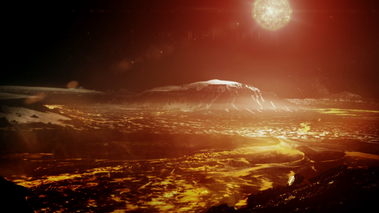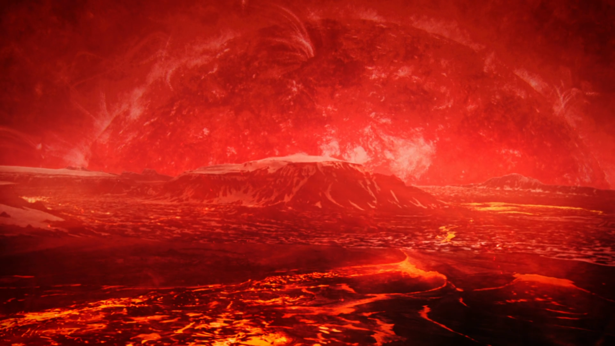 整个地球的内部被翻了出来,它的表面是全新的,是熔融的,并且还在下雨。确切地说——熔岩像雨一样从天上掉下来。