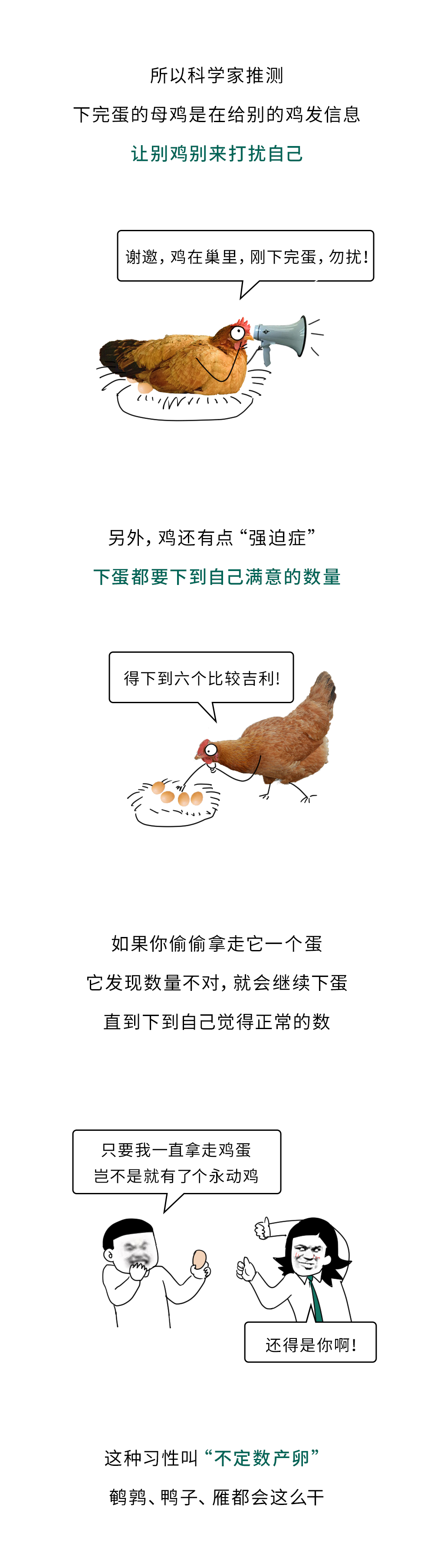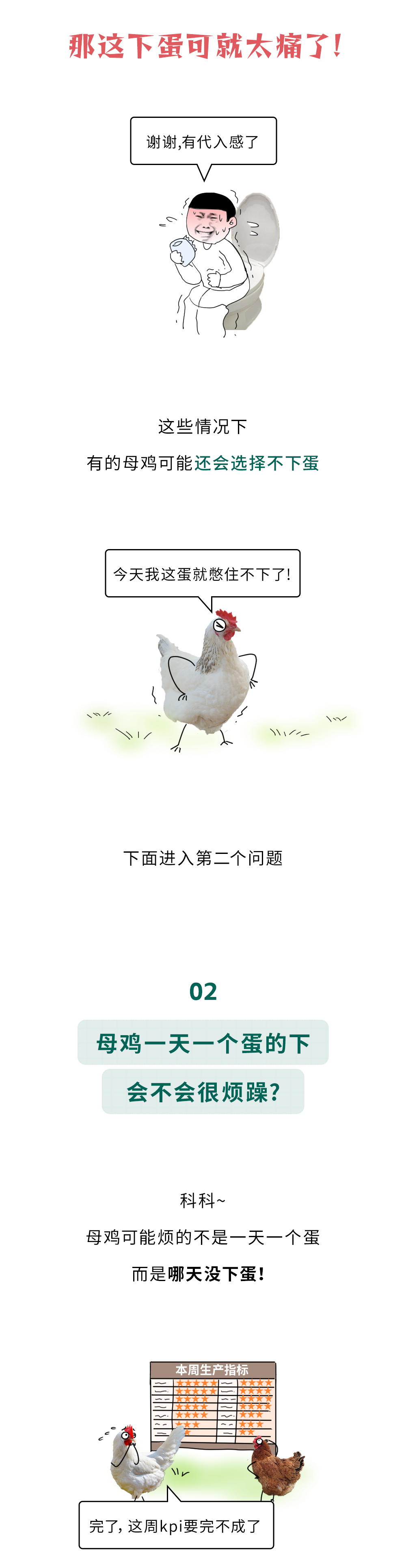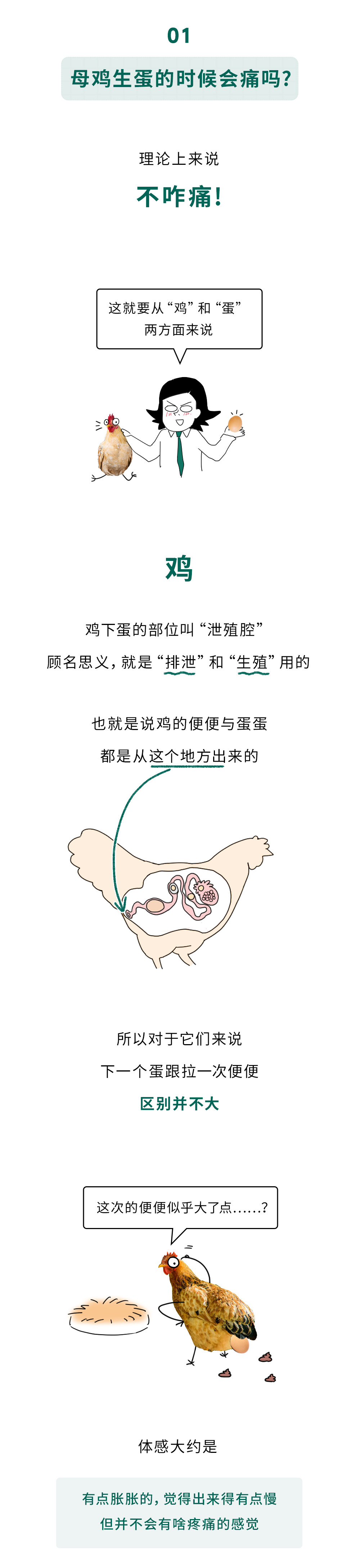 作为日常生活中必不可少的食物和营养品,鸡蛋是普通家庭餐桌上常见的食物,鸡蛋富含高蛋白,对身体生长等有着极好的营养价值。但你没有考虑过这样的问题,母鸡在下蛋的时候,要从体内将它排出,会不会感觉到痛呢?下蛋之后,为何要咯咯哒叫个不停呢?一天下一个蛋,像是上班一样,它会不会感觉到厌烦呢?