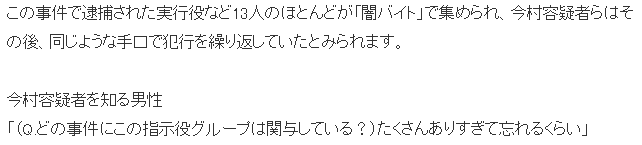 ·据警方透露,其他多达13名同案嫌犯都表示是接受了“黑暗打工”的雇佣而去犯案,主谋之一就是这位“路飞”,如今在日本以及欧美,这种网上发布的“黑暗打工”正在越来越受到亡命之徒的青睐,违法案件也是越来越频发。